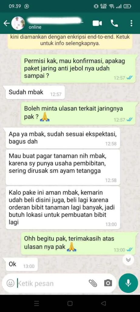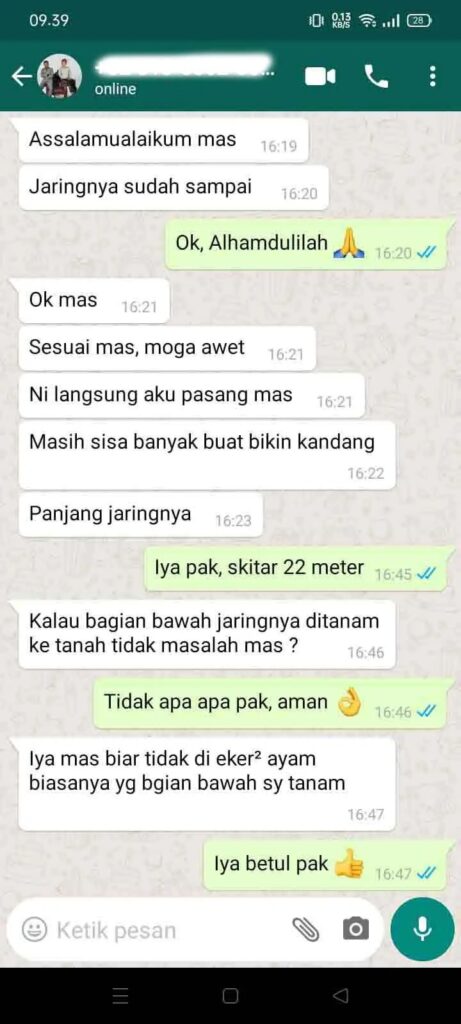Spesifikasi Jaring Ayam / Jaring Pagar Tanaman Kualitas Super